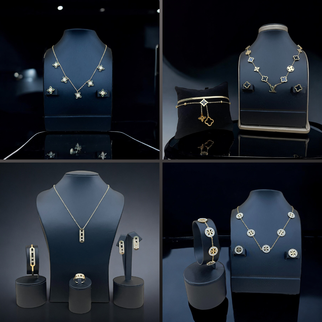 "تألقي بأروع الإكسسوارات المصممة خصيصًا لتكمل جمالك. اكتشفي مجموعة متنوعة من الاطقم الفاخرة, الأساور، الخواتم، القلائد، وغيرها من القطع التي تضيف لمسة من الأناقة والرقي لإطلالتك اليومية والمناسبات الخاصة. جميع منتجاتنا بجودة عالية وبأسعار تنافسية